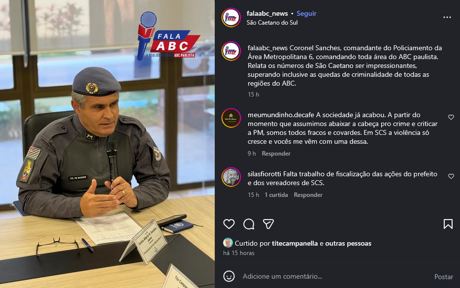 Coronel Sanches destaca as quedas na criminalidade em São Caetano