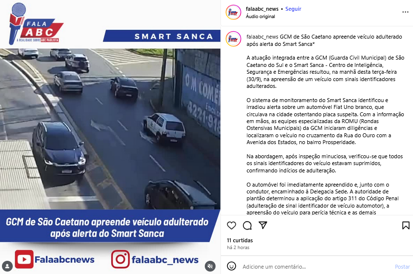 GCM de São Caetano apreende veículo adulterado após alerta do Smart Sanca
