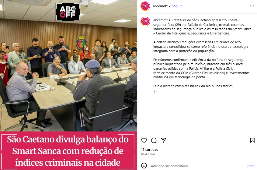 São Caetano divulga balanço do Smart Sanca com redução de índices criminais na cidade