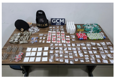 Na abordagem, os agentes localizaram a bolsa, que continha uma grande quantidade de substâncias análogas a entorpecentes, configurando tráfico de drogas. O suspeito recebeu voz de prisão e foi conduzido ao 26º Distrito Policial, onde o caso segue em andamento sob apreciação da autoridade competente.