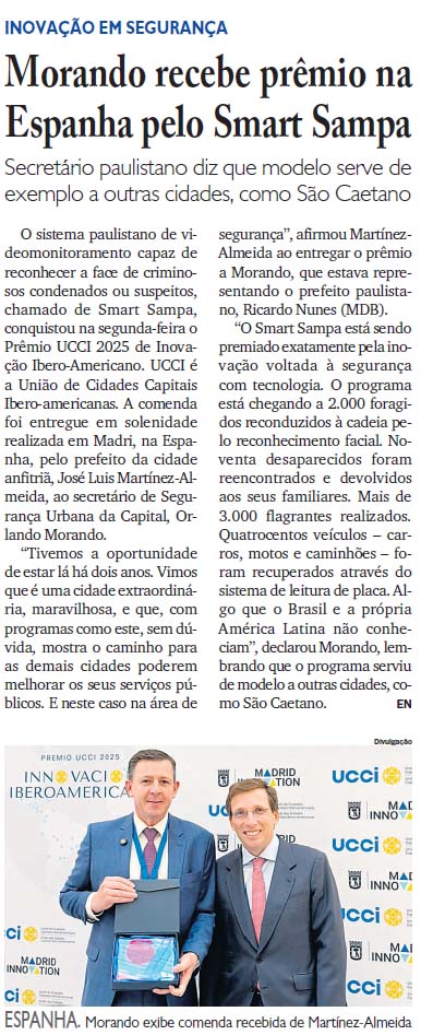 Morando recebe prêmio na Espanha pelo Smart Sampa