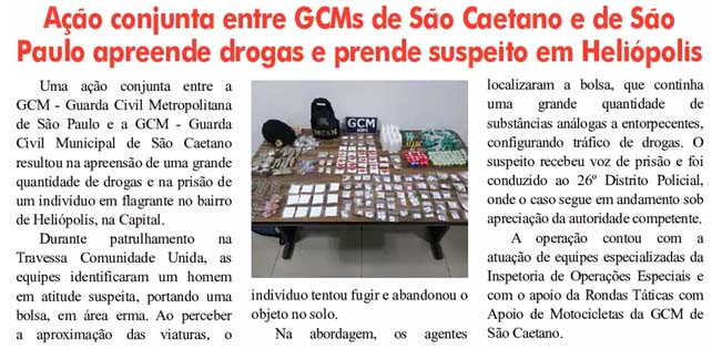 Ação conjunta entre GCMs de São Caetano e de São Paulo apreende drogas e prende suspeito em Heliópolis