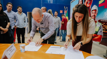 Prefeita Jessica Cormick e prefeito Tite Campanella assinaram parceria para manter serviço que integra rede de proteção a moradoras vítimas de violência