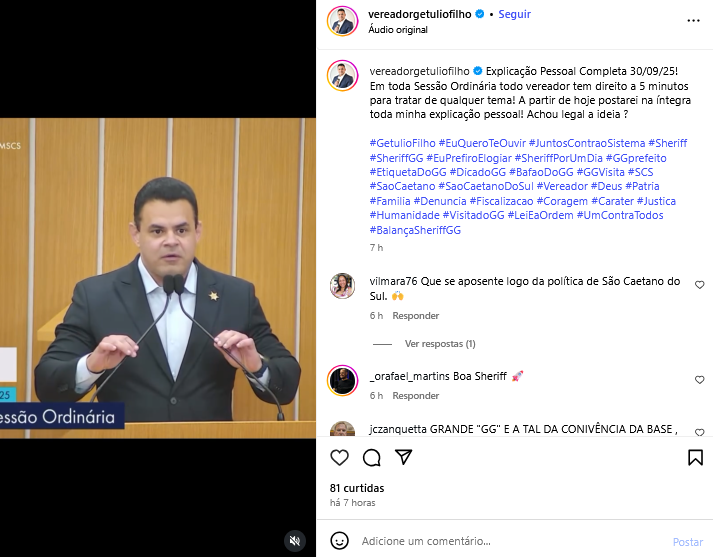 Explicação Pessoal 30/09/25! Todo vereador tem 5 min por sessão. De hoje em diante posto a minha na íntegra