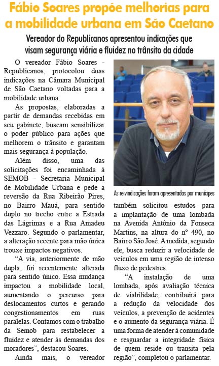 Fábio Soares propõe melhorias para a mobilidade urbana em São Caetano