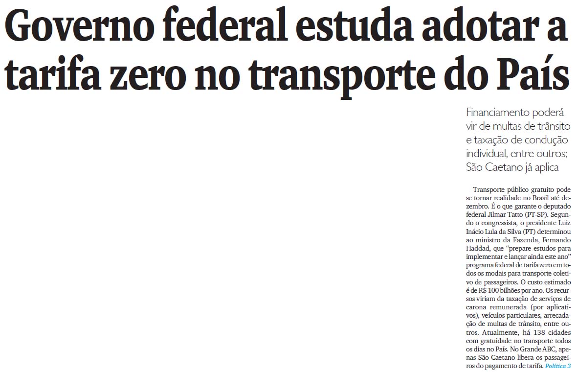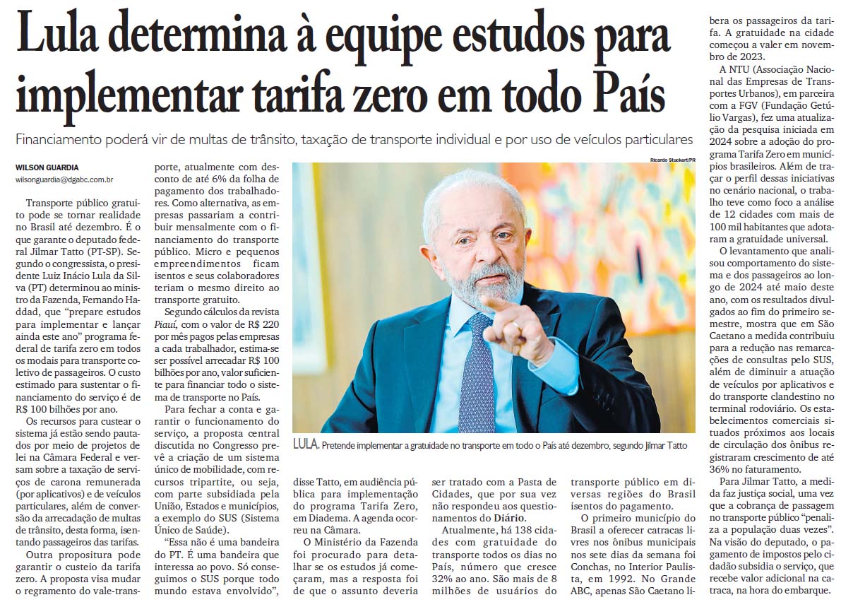 Lula determina à equipe estudos para implementar tarifa zero em todo País