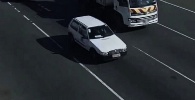 O sistema de monitoramento do Smart Sanca identificou e irradiou alerta sobre um automóvel Fiat Uno branco, que circulava na cidade ostentando placa suspeita. Com a informação em mãos, as equipes especializadas da ROMU (Rondas Ostensivas Municipais) da GCM iniciaram diligências e localizaram o veículo no cruzamento da Rua do Ouro com a Avenida dos Estados, no bairro Prosperidade.