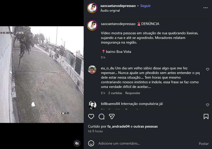 Pessoas em situação de rua quebrando lixeiras, sujando a rua e até se agredindo