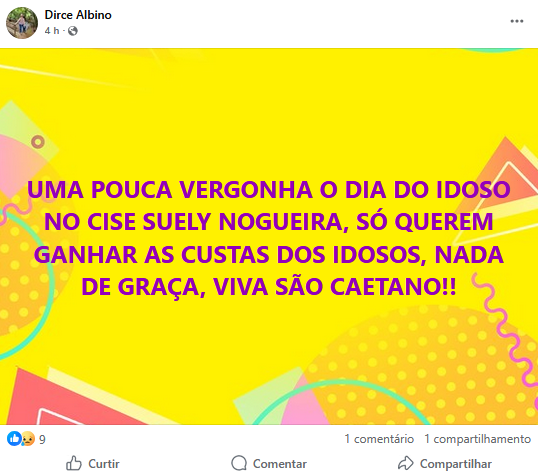 Moradora reclama sobre o Dia do Idoso no CISE Suely Nogueira