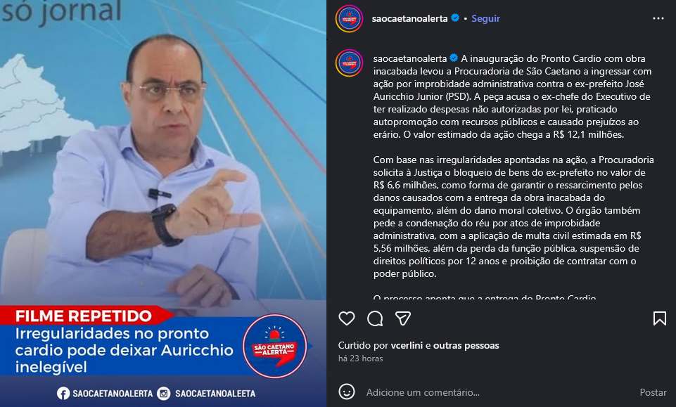 Veículo: Online -> Instagram -> Instagram São Caetano Alerta
