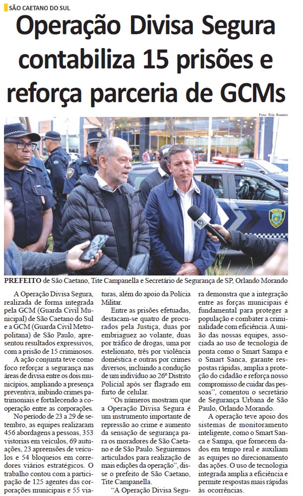 Operação Divisa Segura contabiliza 15 prisões e reforça parceria de GCMs