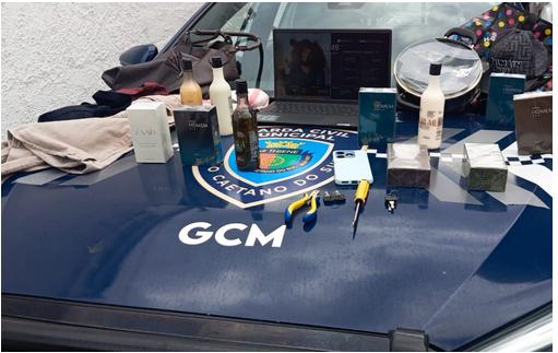 Com a mulher, os GCMs encontraram uma sacola contendo diversos produtos de lojas diferentes, além de ferramentas utilizadas para a prática dos furtos. Entre os itens apreendidos estava um notebook, cuja procedência foi identificada pelos GCMs como sendo de um furto ocorrido em São Bernardo do Campo, o que reforça a atenção e o comprometimento da equipe durante a ocorrência.