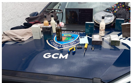Com a mulher, os GCMs encontraram uma sacola contendo diversos produtos de lojas diferentes, além de ferramentas utilizadas para a prática dos furtos. Entre os itens apreendidos estava um notebook, cuja procedência foi identificada pelos GCMs como sendo de um furto ocorrido em São Bernardo do Campo, o que reforça a atenção e o comprometimento da equipe durante a ocorrência.