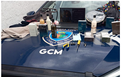Durante patrulhamento preventivo na tarde do último sábado (4), a GCM foi informada sobre um casal que praticava furtos em uma loja de cosméticos. Com base nas características repassadas, os agentes iniciaram buscas pela região e obtiveram êxito em localizar e abordar os envolvidos.