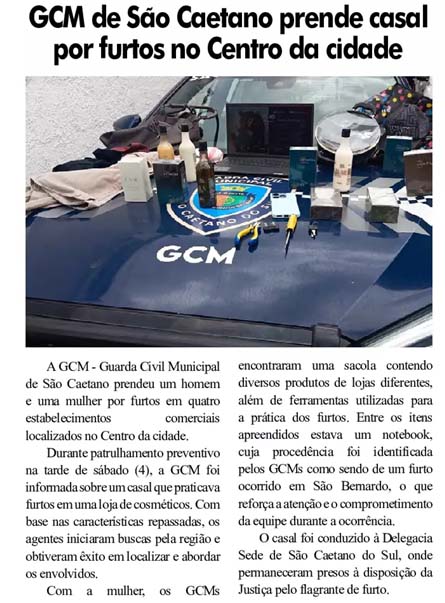 GCM de São Caetano prende casal por furtos no Centro da cidade