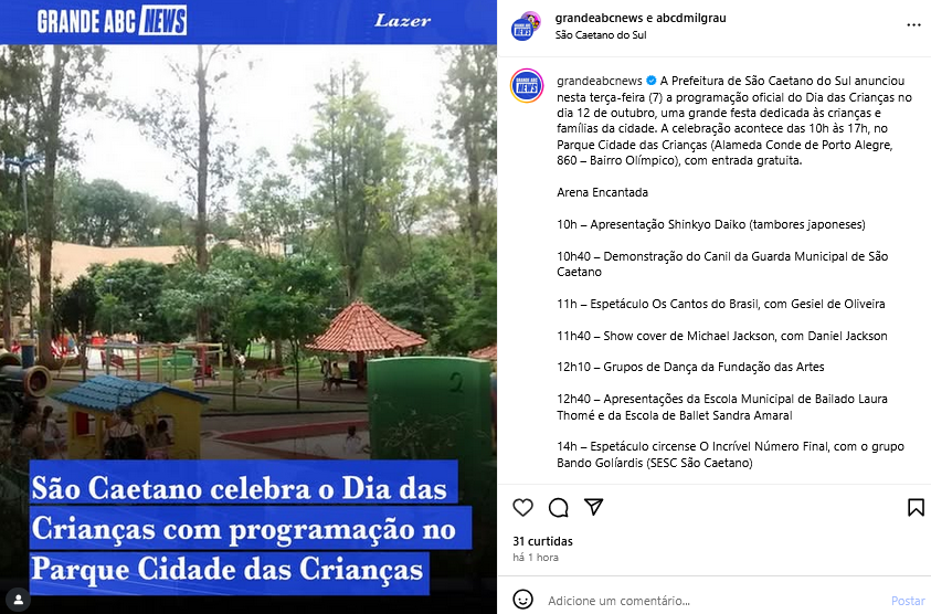 Veículo: Online -> Instagram -> Instagram Grande ABC News
