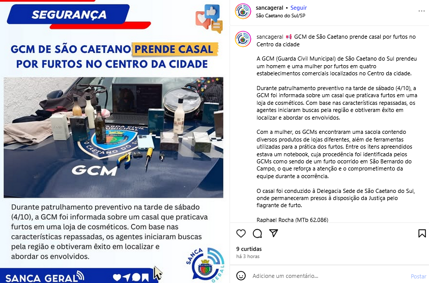 GCM de São Caetano prende casal por furtos no Centro da cidade