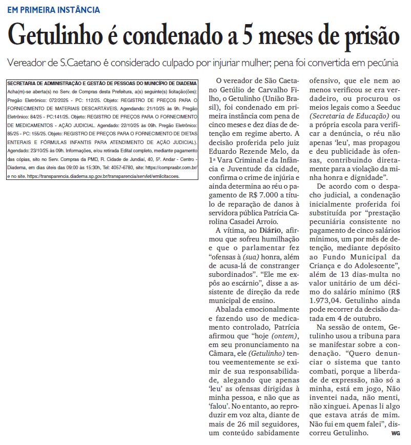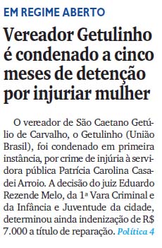 Getulinho é condenado a 5 meses de prisão