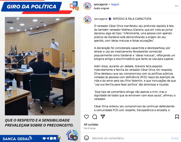 Veículo: Online -> Instagram -> Instagram Sanca Geral