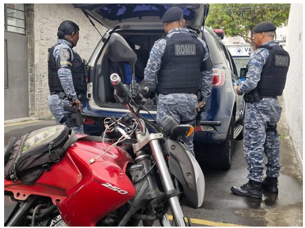O suspeito entrou na cidade pela Avenida Lauro Gomes, pelas ruas do Bairro Nova Gerty. As câmeras do Smart Sanca identificaram a placa da motocicleta e emitiram alerta para as forças de segurança. Uma equipe da ROMU (Rondas Ostensivas Municipais) assumiu a ocorrência.