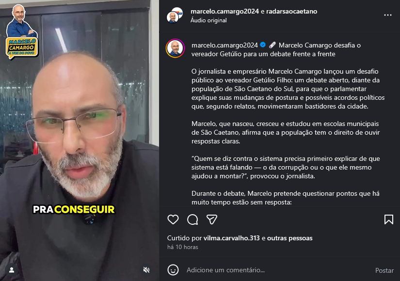 Marcelo Camargo desafia o vereador Getúlio para um debate frente a frente