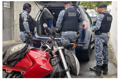 O suspeito entrou na cidade pela Avenida Lauro Gomes, pelas ruas do Bairro Nova Gerty. As câmeras do Smart Sanca identificaram a placa da motocicleta e emitiram alerta para as forças de segurança. Uma equipe da ROMU (Rondas Ostensivas Municipais) assumiu a ocorrência.