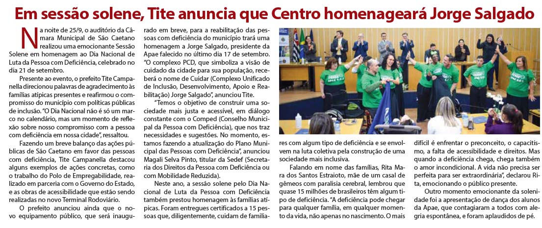 Em sessão solene, Tite anuncia que Centro homenageará Jorge Salgado