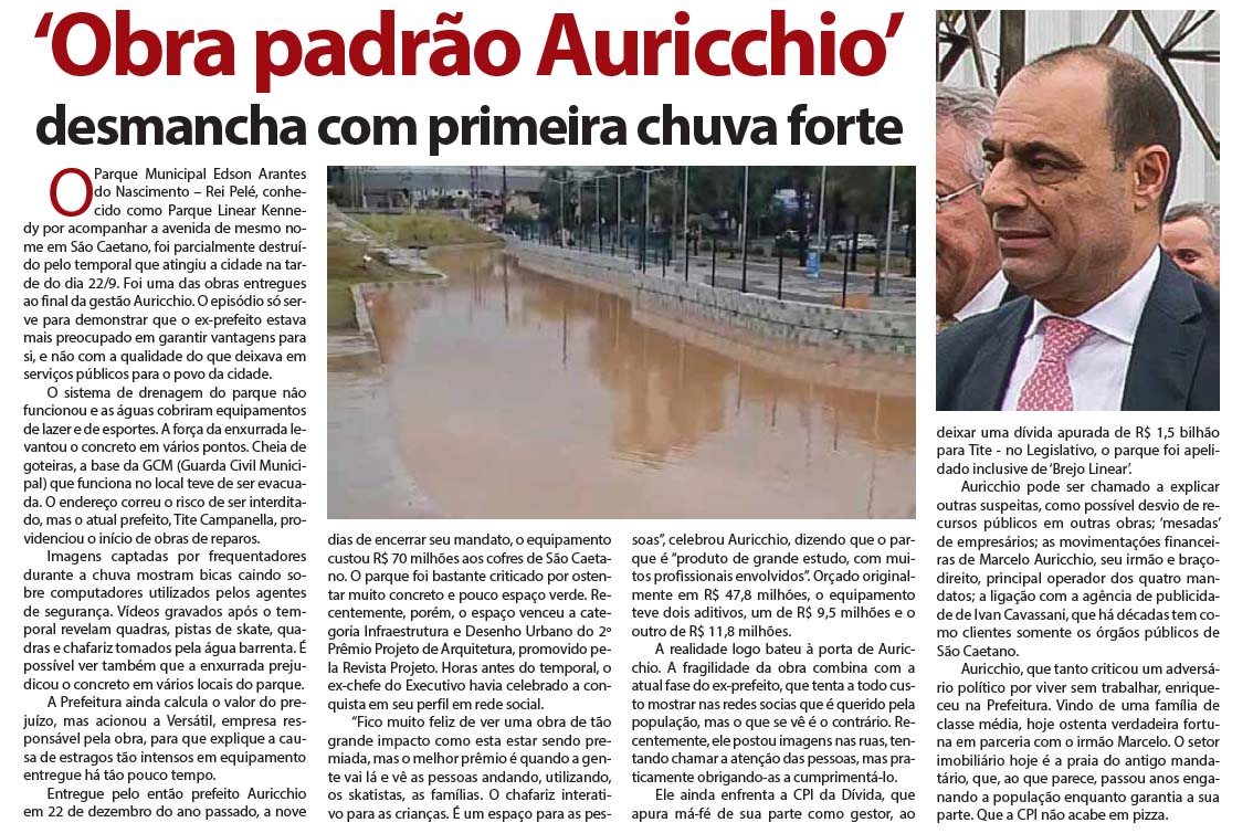 ‘Obra padrão Auricchio’ desmancha com primeira chuva forte