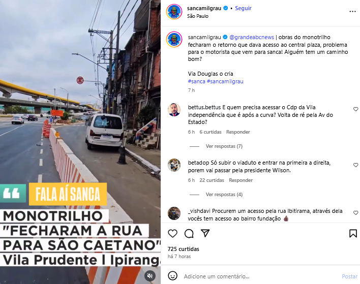 Veículo: Online -> Instagram -> Instagram Sanca Mil Grau