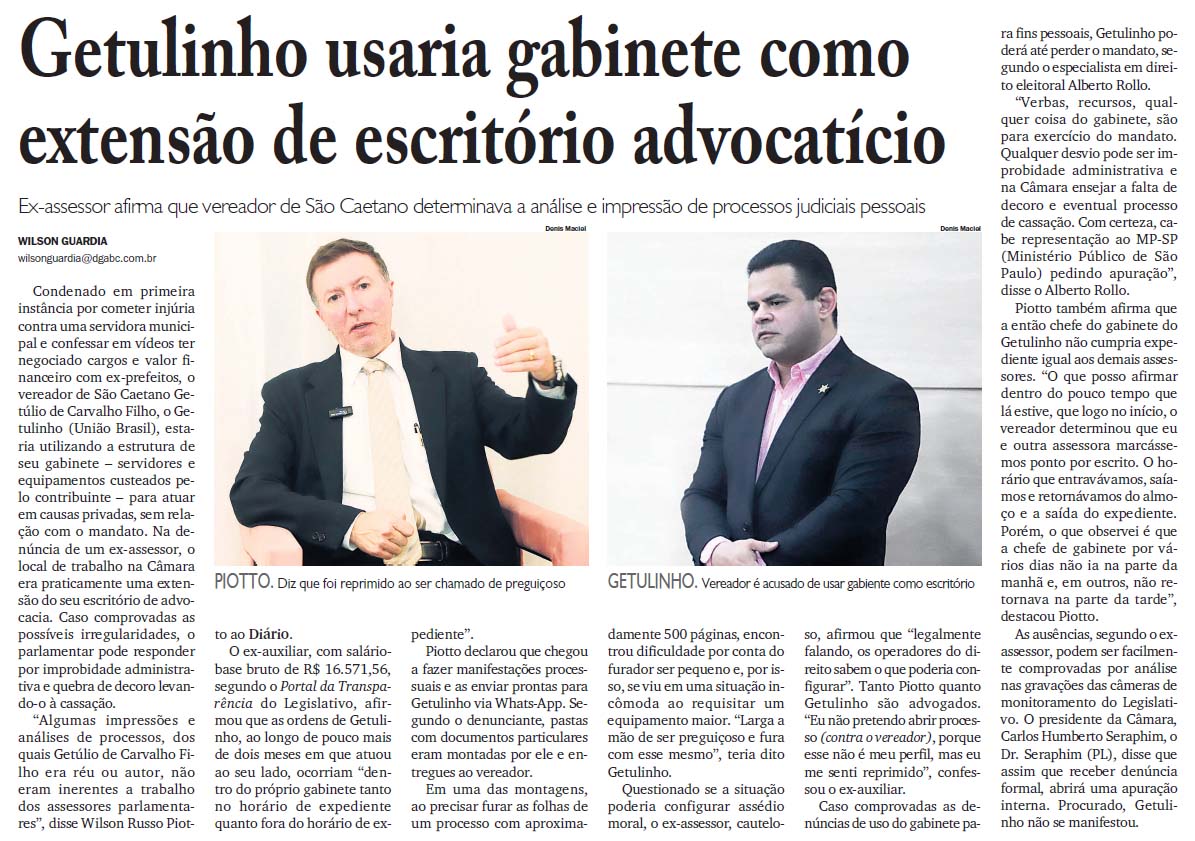 Getulinho usaria gabinete como extensão de escritório advocatício