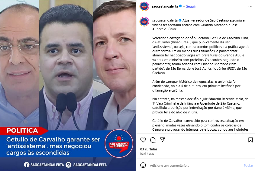 Veículo: Online -> Instagram -> Instagram São Caetano Alerta