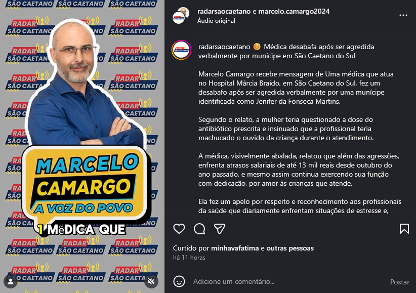 Médica desabafa após ser agredida verbalmente por munícipe em São Caetano do Sul