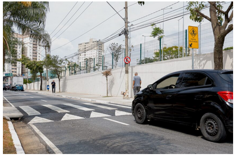 Áreas de maior circulação, como escolas, UBSs e outros locais foram os escolhidos para ter lombofaixas nas proximidades – Foto: Eric Romero / PMSCS
