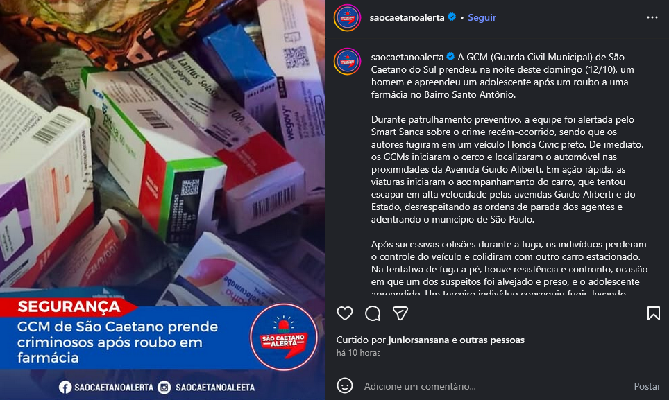 Veículo: Online -> Instagram -> Instagram São Caetano Alerta