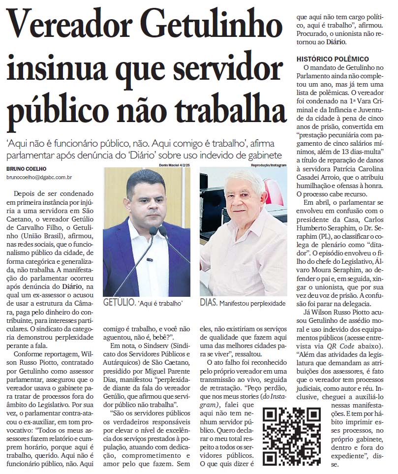 Vereador Getulinho insinua que servidor público não trabalha