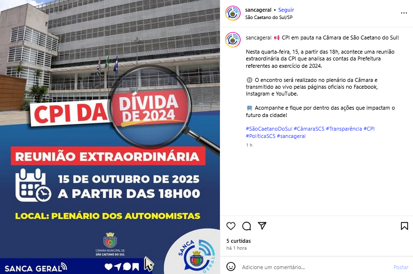 Veículo: Online -> Instagram -> Instagram Sanca Geral