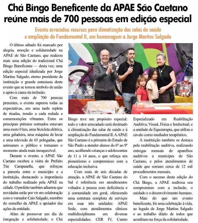 Chá Bingo Beneficiente da APAE São Caetano reúne mais de 700 pessoas em edição especial