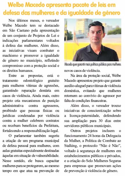 Welbe Macedo apresenta pacotes de leis em defesa das mulheres e da igualdade de gênero
