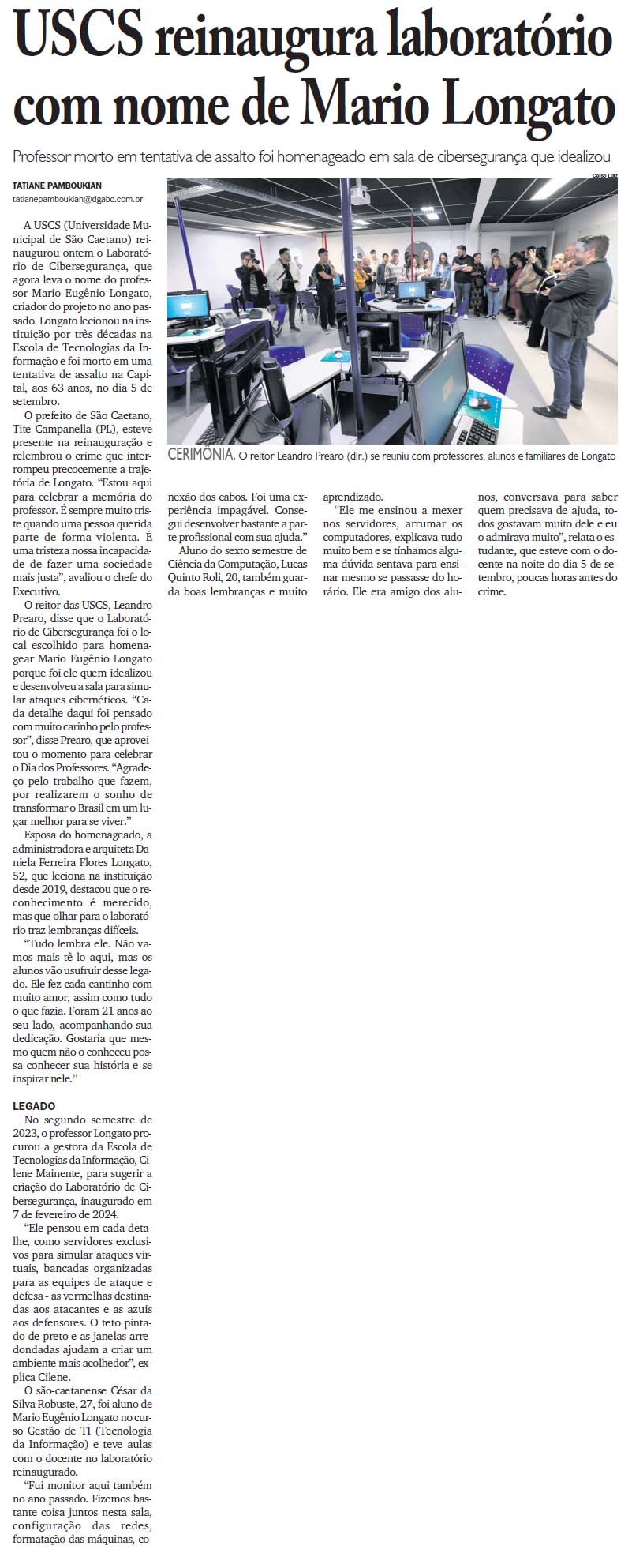 USCS reinaugura laboratório com nome de Mario Longato