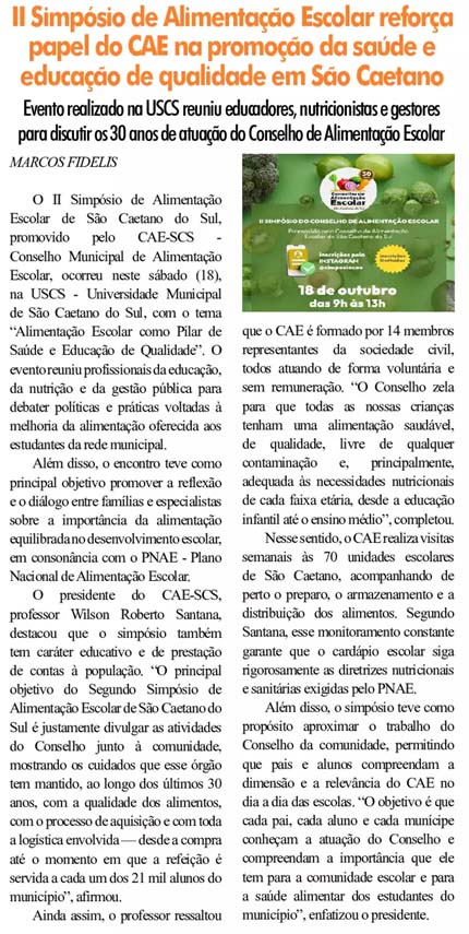 II Simpósio de Alimentação Escolar reforça papel do CAE na promoção da saúde e educação de qualidade em São Caetano