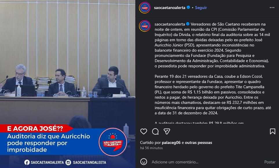 Veículo: Online -> Instagram -> Instagram São Caetano Alerta