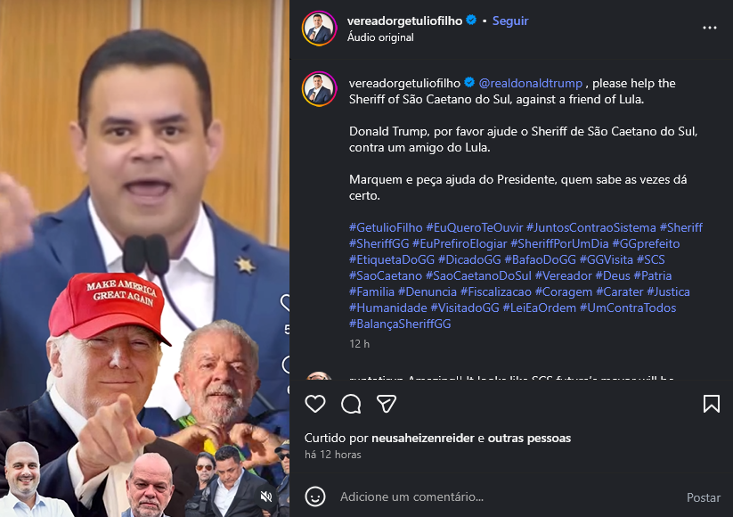 Donald Trump, por favor ajude o Sheriff de São Caetano do Sul, contra um amigo do Lula