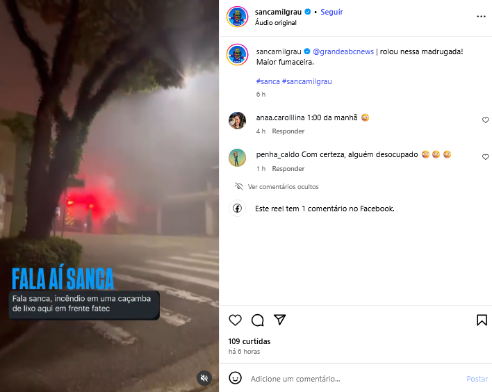 Veículo: Online -> Instagram -> Instagram Sanca Mil Grau