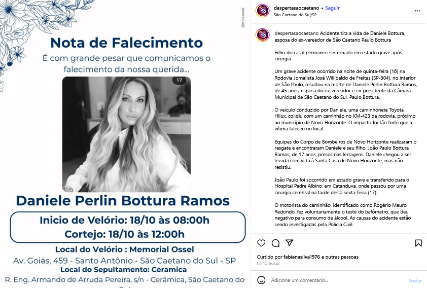 Acidente tira a vida de Daniele Bottura, esposa do ex-vereador de São Caetano Paulo Bottura