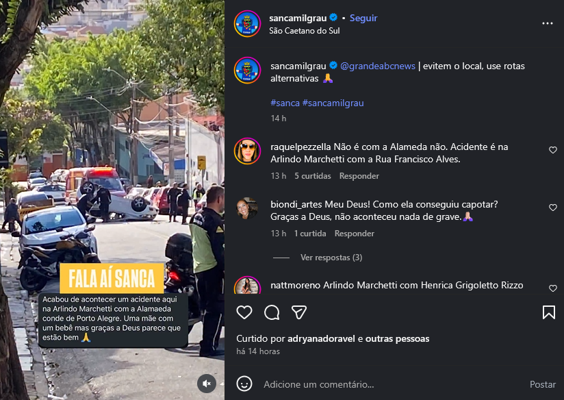 Veículo: Online -> Instagram -> Instagram Sanca Mil Grau
