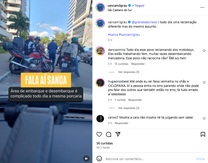Veículo: Online -> Instagram -> Instagram Sanca Mil Grau