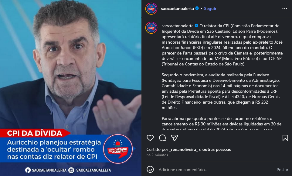 Veículo: Online -> Instagram -> Instagram São Caetano Alerta