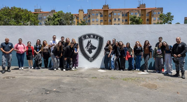 Na sequência, os estudantes conheceram a área externa do Canil, onde ficam os 13 cães da inspetoria, o campo de treinamento e a área de descanso. Os recém-chegados Aslan e Aegon, dois Border Collies que estão em fase de adaptação para participar de atividades de faro e de apresentação em escolas e instituições sociais da cidade, também fizeram festa para a turma.