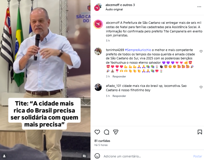 Tite: "A cidade mais rica do Brasil precisa ser solidária com quem mais precisa"