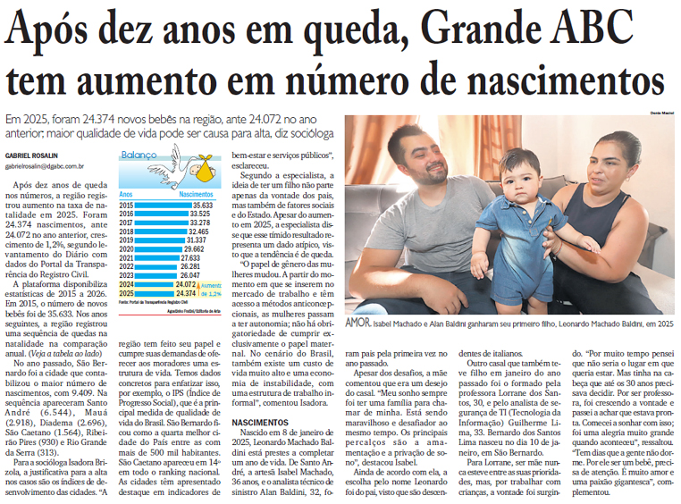 Após dez anos em queda, Grande ABC tem aumento em número de nascimentos